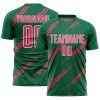 Custom Kelly Green Neon Pink-White Abstract Fragment Art Splash Sublimation Soccer Uniform Jersey