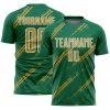 Custom Kelly Green Old Gold-White Abstract Fragment Art Splash Sublimation Soccer Uniform Jersey